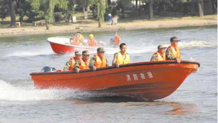 3.航行速度快,可达30公里/小时,极速时可做最大60°角急转弯,船体倾斜不超过15°,在水中稳定性好,特别适合于洪涝灾害、湍急水流、河、江、海中救援使用