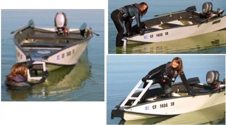 Porta-Bote冲锋舟有专门人员上下船的折叠梯,不论被困者还是重装潜水员,都可以轻松的上下船,无需他人协助。