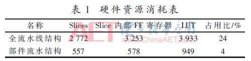 本文对这两种实现方式都进行了实现与验证,经过综合分析后得出,虽然全流水线结构处理数据速度快,但面积开销大。而部件级流水线结构,除法计算采用非流水结构,速度虽然慢,但也能满足要求,面积开销以及性能均得到了优化折中。