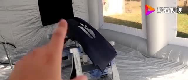 将拉链全部拉上还能做喷漆室,这不老外就在里面热火朝天的干了起来。真不愧是中国制造,一件商品两种用途牛。