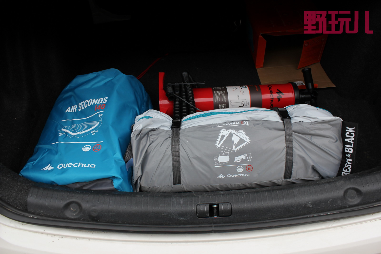 QUECHUA(趣岳)这套露营装备非常适合有车一族,其无骨架的设计,堆放在后备箱中不担心挤压的问题。但因为整套产品有一个必不可少的5.2L手压式充气泵。所以这套产品相对于徒步装备来说,更适合家庭自驾出行。为什么搭配5.2L手压式气泵?它虽然有一定体积,但重量不大,充放气效率高,配有气压表,三个转接头,十分便捷。