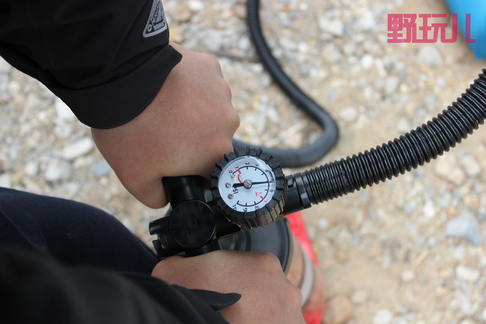 充气泵上自带一个压力表 分别对应了床垫与帐篷的标准压力值 我们不需要时时去按压产品来确认充气程度