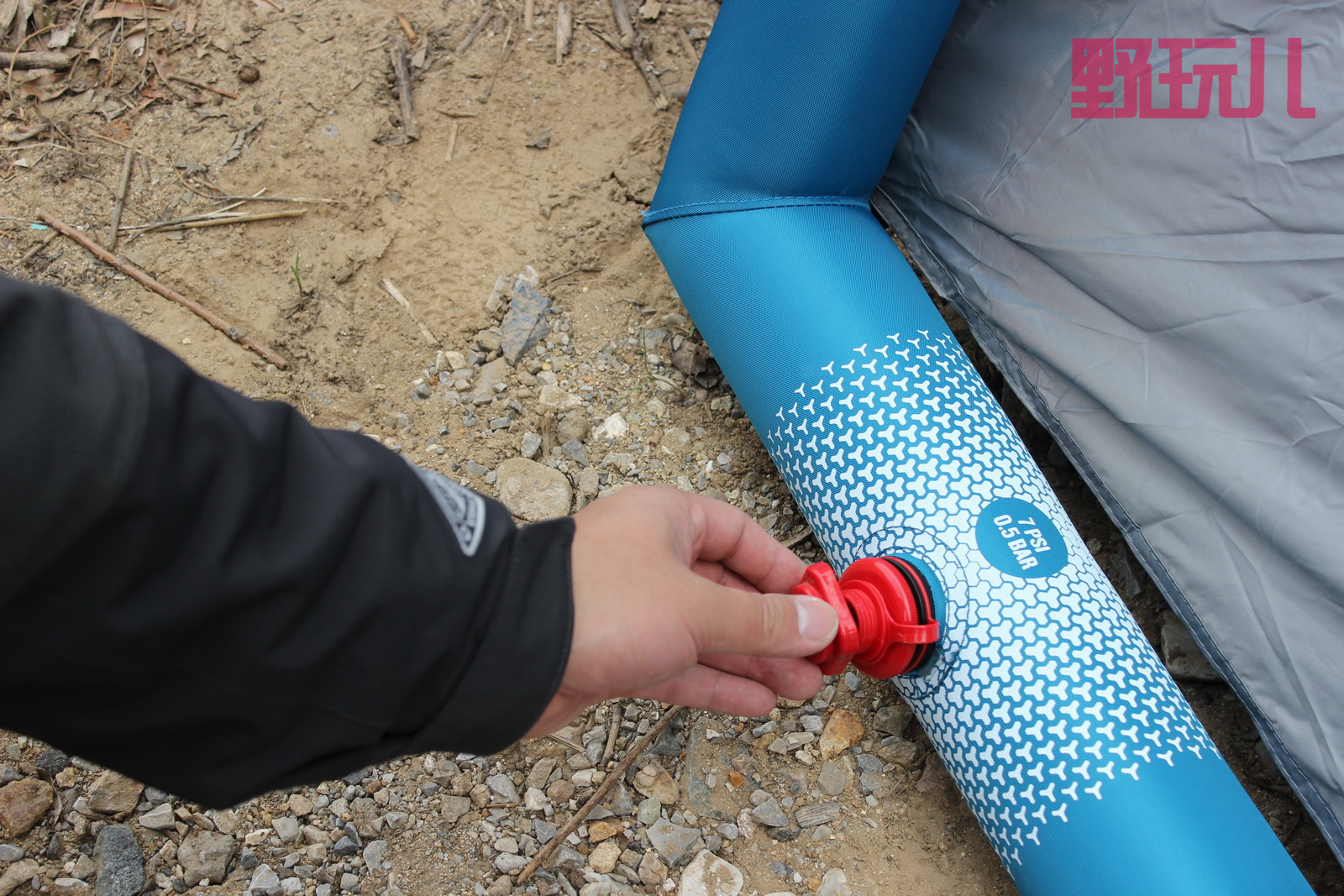 同时帐篷与睡垫上都设计有双层气密口,在充气的过程中可以保证不漏气;在放气的时候可以直接开启放气阀门,快速回收帐篷与床垫。