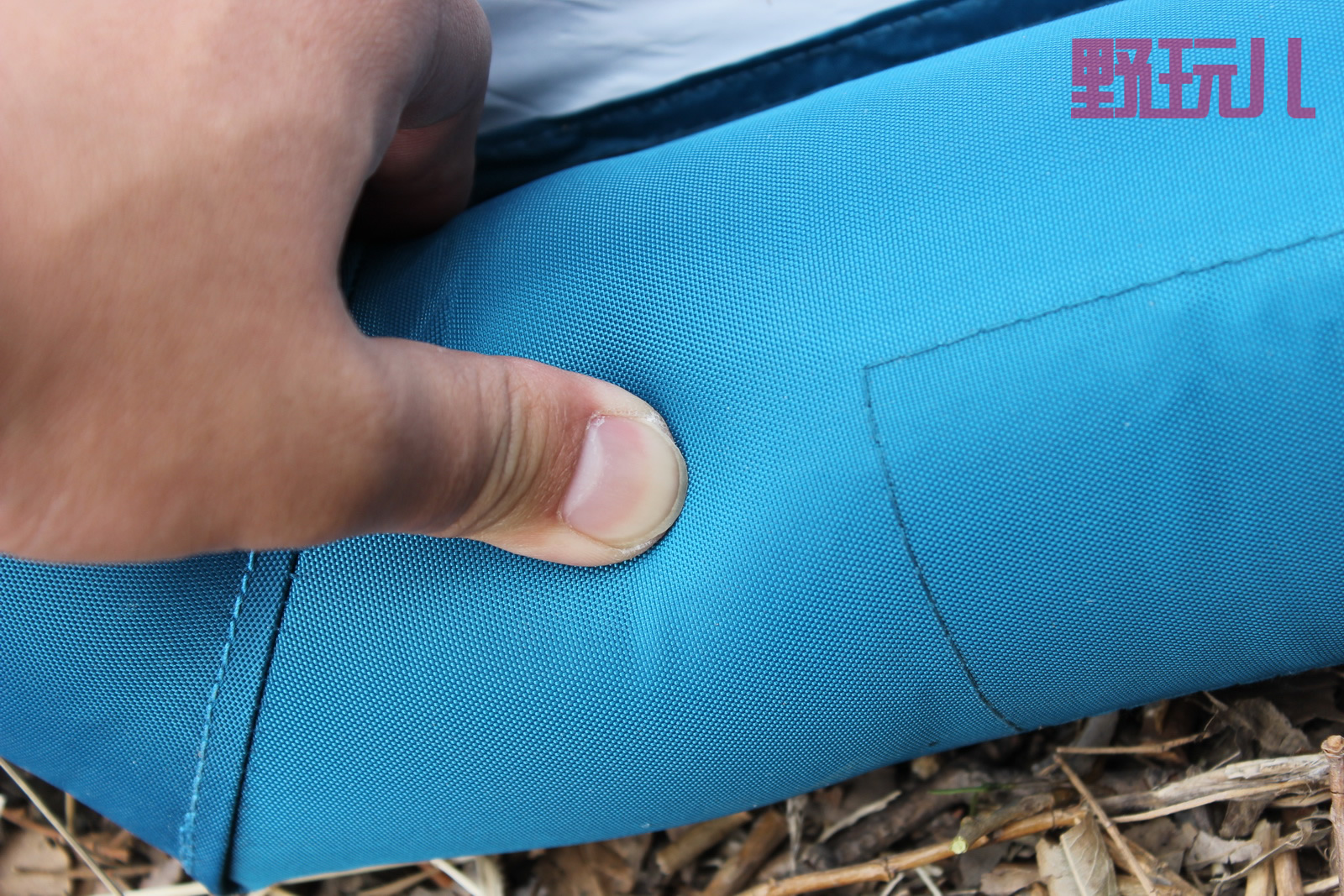 充气支架部分则采用了100%聚氨酯,在不同的密度下,聚氨酯的特性不一。总体来说有比较好的抗压缩以及强度高的特性,作为气柱的材料,具备了支撑性与耐用度。看一下图中按压气柱的状态就知道,整个气柱保持了很好的支撑性。